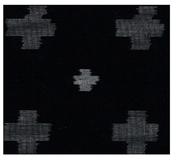 The data used consisted of 70 pattern images extracted from scanned images of Kurume Kasuri referencing the Kasuri pattern in Figure 1. Figure 1 shows 72 of the scanned texture patterns (essentially forming a rectangular texture pattern). By adding salt-and-pepper noise and skewing, we expanded this dataset to a total of 210 images (180 for training and 30 for testing). These images were used for classification.