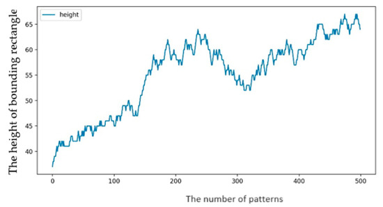As a result of the above steps, the height of the circumscribed rectangle of the created pattern stabilized at 40 pixels, and the final threshold was set to 41 pixels (Figure 12).