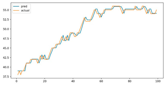 Using the constructed LightGBM model, we performed one-period predictions on newly created simulation data (100 patterns). The results demonstrated high prediction accuracy, with an RMSE of 0.689 and an R2 of 0.986 (Figure 11).