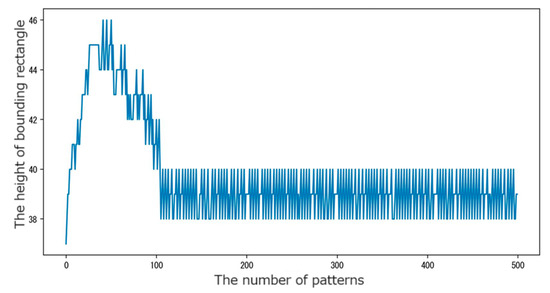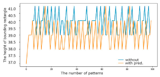 Upon analyzing the height of the circumscribed rectangle of each pattern created, it was observed that when adjustments are made with prediction, there are almost no patterns that reach the threshold, indicating that deviation can be effectively suppressed (Figure 13).