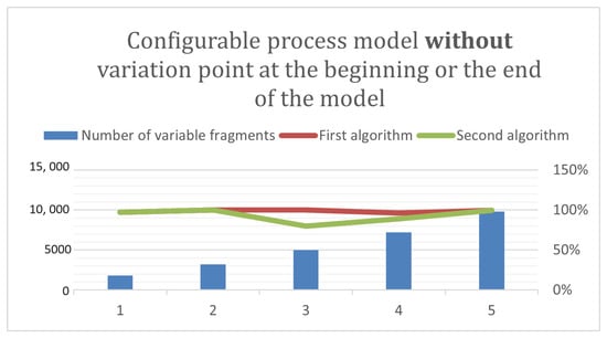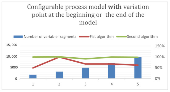 To better visualize the results, we created two graphs that show the ability of our algorithms to detect changes in two scenarios. The first scenario involves a configurable process model without a variation point at the beginning or end (see Figure 5). The second scenario involves a configurable process model with a variation point at the beginning or end (see Figure 6).