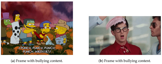 As far as we know, there are no publicly available datasets for the highlighted problem. Therefore, we had to create one that we utilized to train and evaluate the model we proposed. As some of the obtained GIF files did not truly depict bullying behavior, we had to manually filter them out and select just the appropriate ones. Some examples of such files with anti-bullying content are presented in Figure 2. Some examples of GIF files with bullying content are presented in Figure 3.