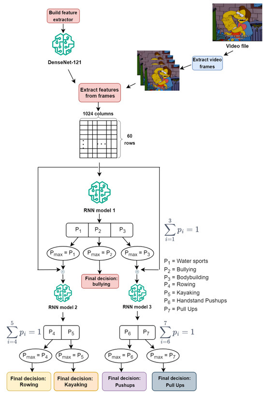 The proposed hybrid architecture learns the GIFs’ representation to classify them into one of the following categories: bullying and non-bullying. Below, we discuss the architecture’s main components, and then, we present how it works.