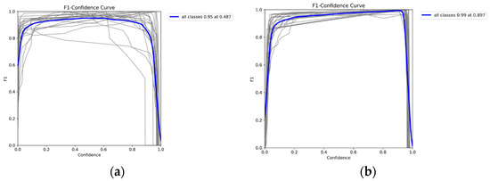 Figure 6 shows that the RT-DETR model has a higher peak F1 score than YOLOv10, indicating superior optimal performance. Additionally, the larger area under the F1–confidence curve for RT-DETR compared to YOLOv10 suggests that RT-DETR consistently performs better across various confidence levels.