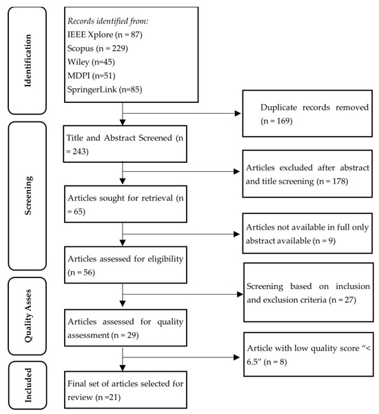 This study identified 29 articles that met the criteria for objective and selection criteria. Following a thorough quality assessment, 21 articles were selected for a detailed review, comprising 17 peer-reviewed journal articles, three conference papers, and one book chapter (