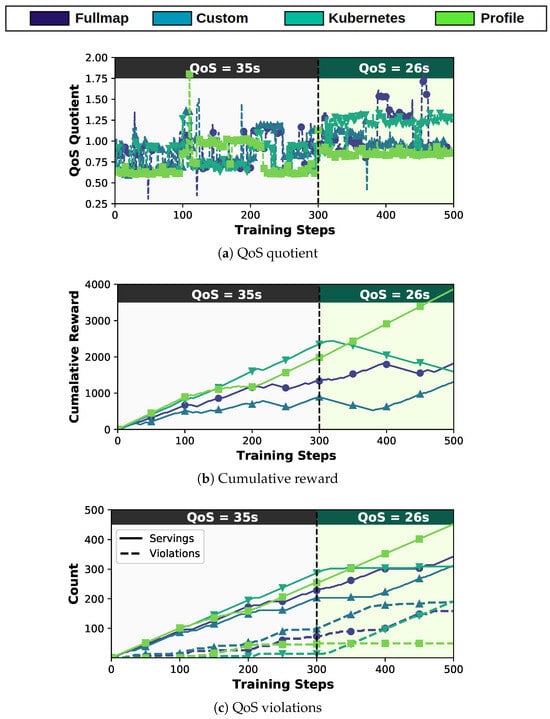 - Giagkos, D.; Tzenetopoulos, A.; Masouros, D.; Soudris, D.; Xydis, S. Darly: Deep Reinforcement Learning for QoS-aware scheduling under resource heterogeneity Optimizing serverless video analytics. In Proceedings of the 2023 IEEE 16th International Conference on Cloud Computing (CLOUD), Chicago, IL, USA, 2–8 July 2023; pp. 1–3. [Google Scholar]