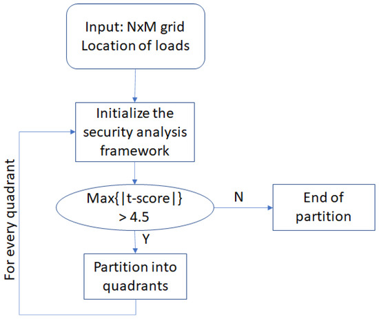 Proposed partition framework for the NxM grid power delivery network, where t-score is the t-test value.