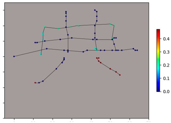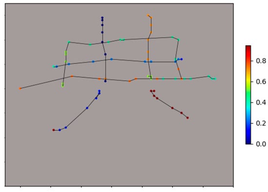 By visualizing the trajectory sequence in two dimensions, the sampling points that ordinary convolution network and 1-D ResNetDC pay the most attention to when classifying Chinese character “典” are intuitively seen, as shown in Figure 27 and Figure 28. The prediction result of the ordinary convolution network is wrong, and the prediction category is “兴”. The 1-D ResNetDC pays attention to the sequence correlation over a long range, and the classification prediction of “典” is correct. This intuitively explains the high accuracy of 1-D ResNetDC.