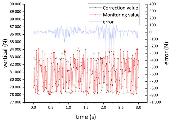 An MLP neural network was utilized to calibrate the wheel–rail contact force signals obtained from the instrumented wheelset of the railway inspection vehicle operating on the Baotou–Shenmu Railway line. This calibration was based on the data collected by the ground monitoring platform that corresponded to the railway inspection vehicle’s measurements. The results of the calibration are displayed in Figure 5.