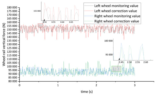 4.2.2. Calibration of Wheel–Rail Contact Force on a Straight Section for a Heavy-Load Train