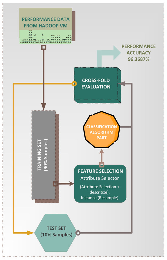 A performance data collection is defined as the process in which the data related to the performance measurement is gathered from the network devices and is further stored in the database. In the setup of this test case, if the definition of the performance data collection is applied, it shows the Hadoop-driven VM-collected performance data related to the performance measurement of (1) the CPU, (2) disk, (3) memory space, and (4) network utilization. This performance data was stored in VMM and HDP.