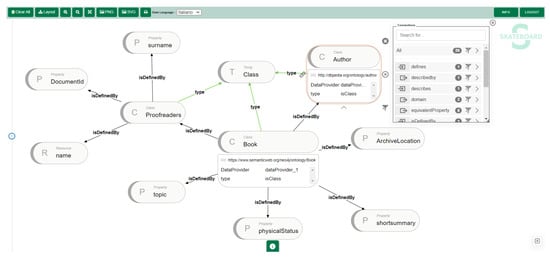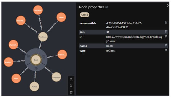 Users can also add new properties that are not present in DBpedia but are relevant to the ontology they are developing. These new properties can be defined as attributes, properties, or classes and can be linked to a custom namespace, for example, https://www.semanticweb.org/neo4j/ (the semanticweb.org domain is used purely as an example of an IRI for the ontology, and does not represent an actual domain). Examples include: NMProperty#:ArchiveLocation to denote the physical location of a book within an organization that maintains a physical copy, or NMAttribute#physicalStatus to describe the condition of the book, or even NMClass#Proofreaders to refer to the individuals responsible for proofreading (see Figure 3).
