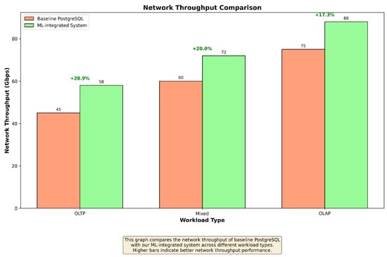 Network throughput comparison across different workload types. Higher bars indicate better network throughput performance.