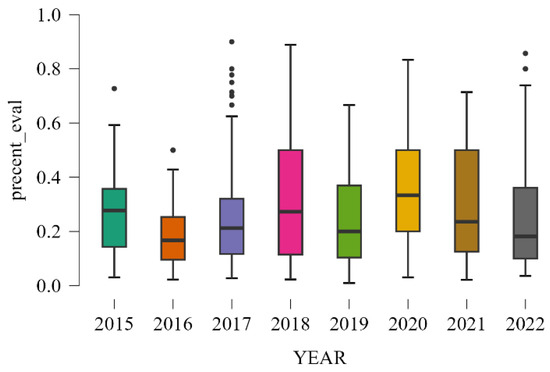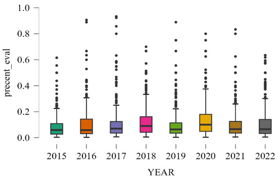A longitudinal analysis of the dataset over the eight-year period (Table 5) revealed that the mean participation rates for undergraduate students ranged from 8.25% in 2015 to a peak of 13.24% in 2020, with standard deviations varying between 8.56% and 13.77%.