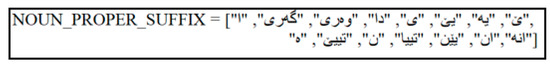 - Hassani, H. A method for proper noun extraction in Kurdish. In Proceedings of the 6th Symposium on Languages, Applications and Technologies (SLATE 2017), Vila do Conde, Portugal, 26–27 June 2017. [Google Scholar] [CrossRef]