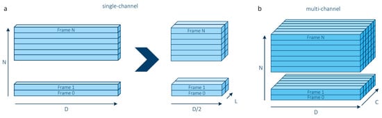 For multi-channel input, the input dimension for a training batch is [], where C is the number of channels as shown on the right of Figure 2. For the forward run of the model (the classification step) is chosen. For the multi-channel LSTM approach, the channel sets defined in Table 1 were used to train and test individual models.