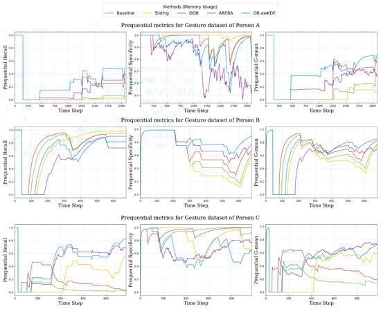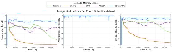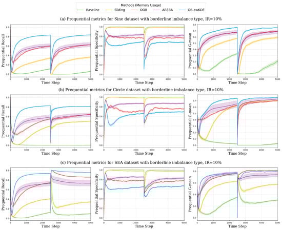 - OB-awKDE: The proposed method. To achieve memory optimization, the maximum queue size for each class (positive, negative, and KDE-generated samples) was set to 20, resulting in a total memory usage of 60. We set the bias ratio to 0.5 .