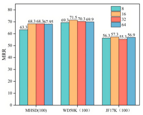 Experimental results indicate that, on three datasets, the highest MRR values were not achieved when the number of experts was 64, suggesting that more experts do not necessarily lead to better performance. Instead, the number of experts should be determined based on the actual conditions of the model and data. When conducting experiments, it is necessary to consider data size, model complexity, and task characteristics to select the most appropriate number of experts. An excessive number of experts increases computational and storage costs and may diminish the model’s generalization ability. Therefore, the number of experts in experimental setups should be adjusted flexibly according to specific circumstances to achieve optimal performance and efficiency.