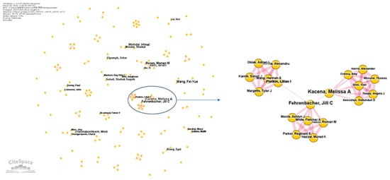4.1.1. Researchers with High Publication Output and Author-Based Co-Authorship Network Analysis