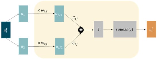 The coupling coefficient between capsule (of layer ) and j (of layer ) is denoted by the scalar . The algorithm known as the iterative dynamic routing algorithm determines these coefficients.