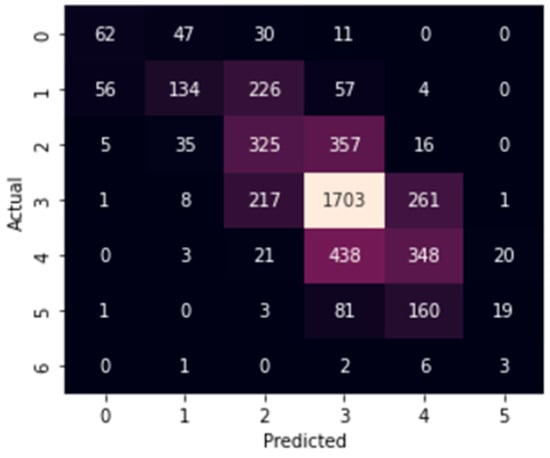 The confusion matrix for the multimodal system in the MOSEI dataset.