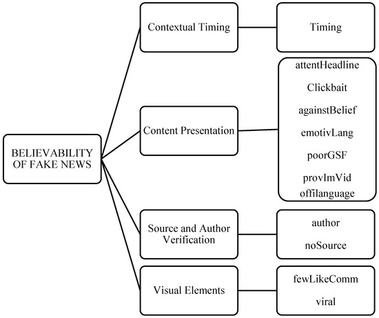 Fake news on social media uses different practices to attract people’s attention and make it seem more credible. These practices include the use of sensational titles and exploiting structural elements to make posts more attractive, engaging, and shareable [52]. For example, engaging headlines and clickbait techniques are important for a post’s believability [53]. Elements, such as likes, comments, emotional language, format, and source credibility, further contribute to a post’s attractiveness [10,39]. Other trust-building mechanisms include a post’s professional language, references to reputable organizations, and the incorporation of trusted brands on websites [54]. Conversely, poorly edited content or messages with errors diminish their credibility [45]. Timing is also important [55] and exposure to even a single fake headline enhances its perceived truthfulness [44]. Furthermore, it is more likely for users to share fake news when the bias aligns with their pre-existing viewpoints [14,26,35,41,56]. So, it is important to understand how social media users recognize reliable from unreliable information. In light of this, this study explores the following specific characteristics of posts: