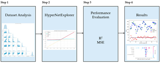 In this study, a methodology for shear wave velocity (Vs) prediction was determined using the tool developed by the authors (HyperNetExplorer 2024V1). The methodology of the study includes the development of the dataset, utilization of the HyperNetExplorer 2024V1 for this problem, the performance evaluation of Hyperparameter-Optimized ANNs, and the presentation of the results. This process is summarized in Figure 1.