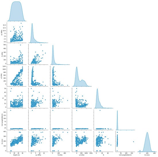 In recent years, numerous studies have been conducted to estimate shear wave velocity (Vs) using machine learning techniques, aiming to enhance prediction accuracy and efficiency. Joshi et al. (2024) [20] developed VelProfES, a machine-learning model to predict subsurface shear wave velocity profiles using borelog data from 1101 stations of Japan’s K-NET network. By incorporating features like soil type, layer thickness, and SPT-N values, and addressing data imbalance with 10,510 synthetic layers generated via CTGANs, the model achieved superior accuracy compared to empirical and polynomial models, particularly at 5–20 m depth. This highlights the effectiveness of combining machine learning with synthetic data in geophysical studies. In Mousavi et al. (2024) [21], the authors proposed both empirical and machine learning models to predict the shear wave velocity (Vs) of granular soils, considering factors like soil grading, void ratio, and confining pressure. Among the tested models, the Artificial Neural Network (ANN) exhibited the highest prediction accuracy, underscoring the advantages of machine learning methods over traditional empirical models for more precise Vs estimation in geotechnical applications. Jin et al. (2024) [22] introduced a machine-learning model based on a Random Forest algorithm to estimate shear wave velocity (Vs) using cone penetration testing (CPT) data, eliminating the need for direct Vs measurements. The study tackled the difficulties of Vs profiling in submerged materials like tailings and coal ash. The model demonstrated superior accuracy compared to conventional approaches and enabled the generation of continuous Vs profiles with higher vertical resolution, offering an innovative approach for geotechnical analyses in complex environments.