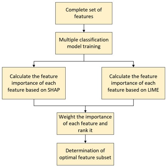 LIME (Local Interpretable Model-agnostic Explanations) explains individual predictions of complex black-box models by approximating their behavior locally [31]. For a given sample, LIME creates many slightly changed versions of it and checks how the black-box model predicts on these new samples. Then, it builds a simple and easy-to-understand model (like a small linear model or decision tree), giving more weight to the samples that are closer to the original one. This simple model mimics how the black-box model behaves around that specific sample, making it clear which features had the biggest influence on that particular prediction. The flow chart of key risk feature identification based on comprehensive interpretable method is shown in Figure 2.