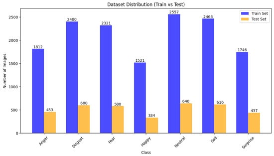We experimented with our proposed approach using the NCAER-S dataset. Nhat et al. [29] extracted NCAER-S from CAER-S [17] to improve its robustness. CAER-S [17] lacked generalization because many images in its training and test sets came from the same videos. This similarity made the model less effective at handling new data. The new dataset ensured a better separation between training and test images, which allow for more reliable evaluations. According to Figure 8, we can observe that some classes did not have enough images in the test set; therefore, we combined the training, test, and validation datasets and split them again for a balanced distribution.