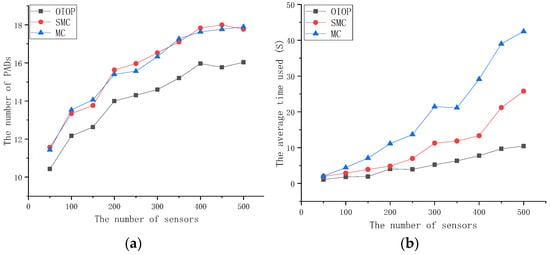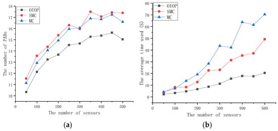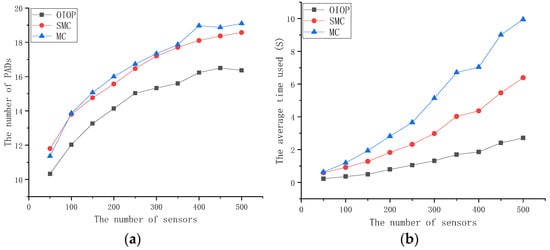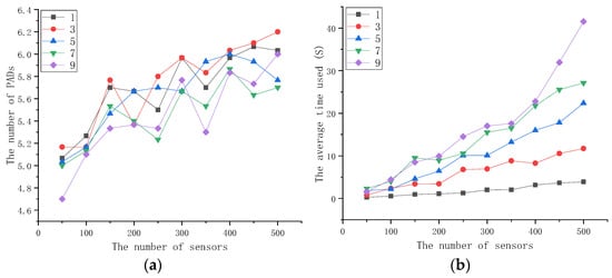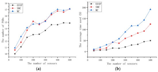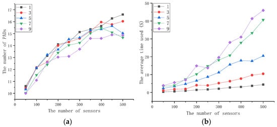 - On the 16,384 × 16,384 map, increasing the number of sensors from 50 to 500 resulted in PAD usage staying between 24 and 45.