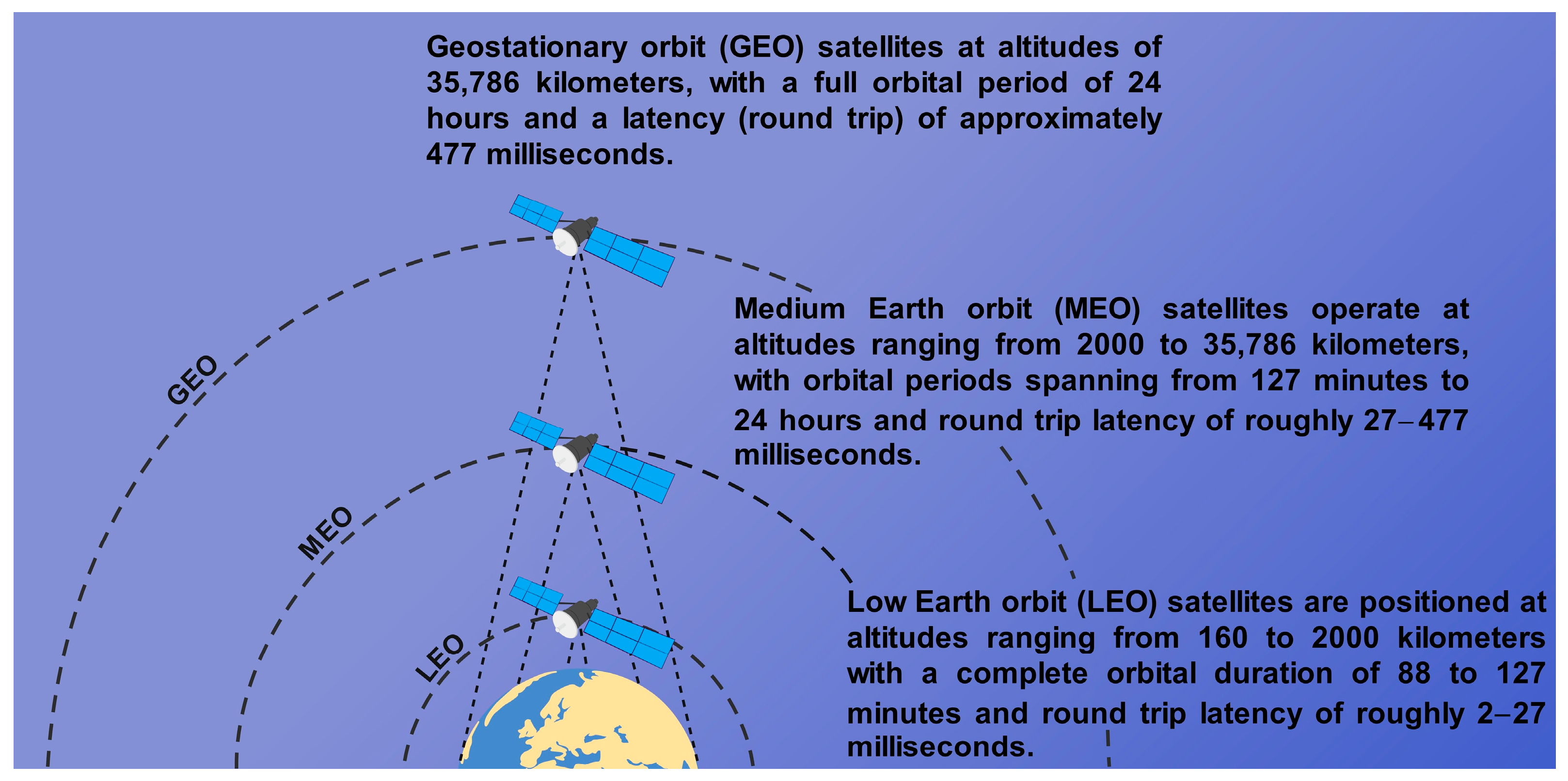 Latency | Very Low (20–40 ms)—Ideal for real-time response | Medium (100–200 ms)—May hinder interaction | High (RTT typically ~500–600 ms; one-way space-path ~240 ms)—Not suitable for live services |