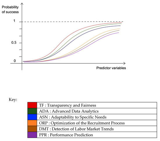 These six determinants—Advanced Data Analytics (ADA), Performance Prediction (PPR), Optimization of the Recruitment Process (ORP), Transparency and Fairness (TF), Adaptability to Specific Needs (ASN), and Detection of Labor Market Trends (DMT)—were selected based on three converging criteria: (1) frequency across the included literature, (2) empirical support in high-impact studies, and (3) alignment with existing theoretical frameworks [10,11,22]. This thematic synthesis allowed us to construct a conceptual framework, later tested through a binary logistic regression model. This thematic synthesis supported the construction of a conceptual framework, later tested through a binary logistic regression model, in which the dependent variable (IT recruitment success) was tested against the six determinants. This is discussed in more detail below.
