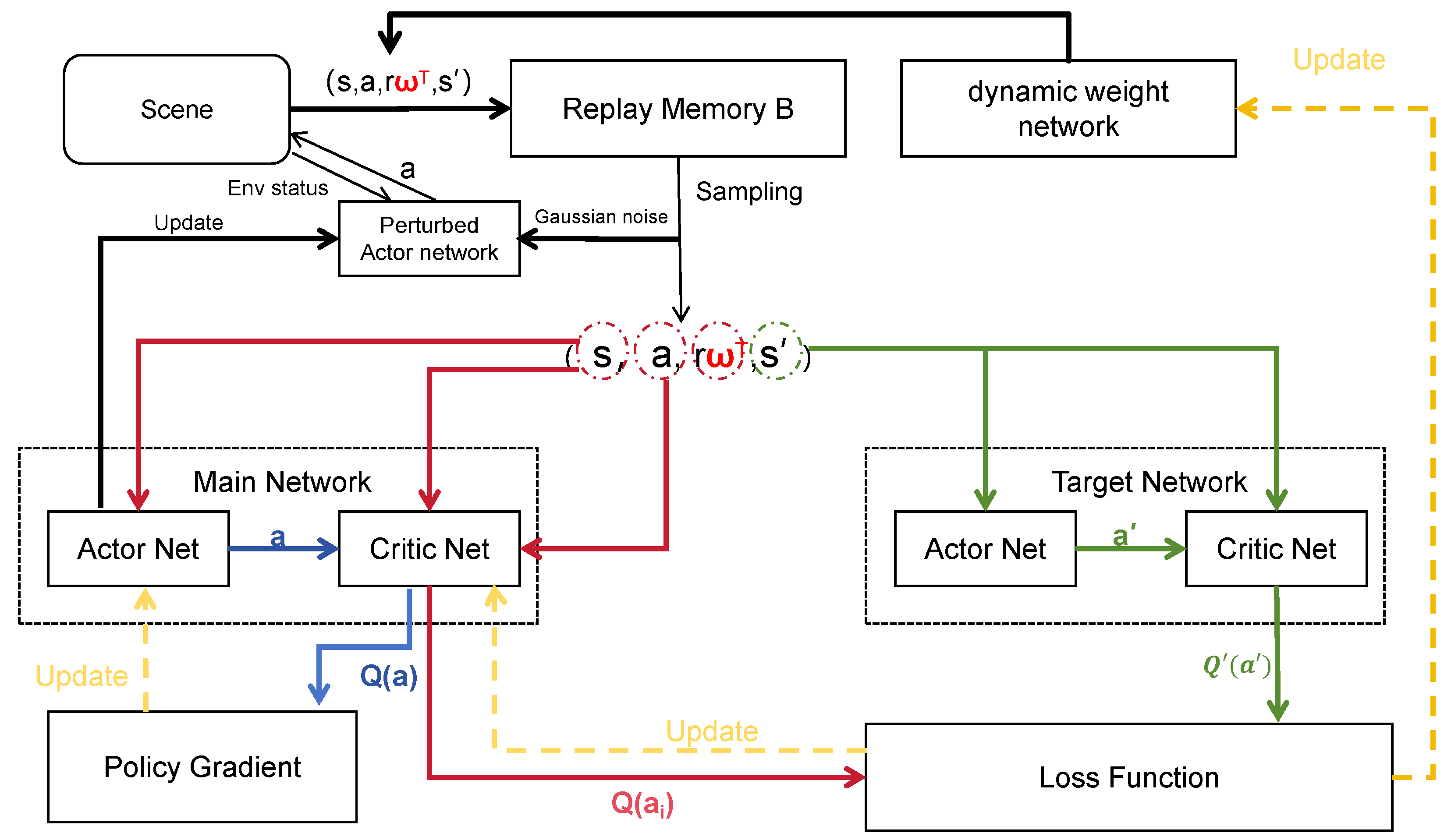 - Lillicrap, T.P.; Hunt, J.J.; Pritzel, A.; Heess, N.; Erez, T.; Tassa, Y.; Silver, D.; Wierstra, D. Continuous control with deep reinforcement learning. In Proceedings of the International Conference on Learning Representations (ICLR), San Juan, Puerto Rico, 2–4 May 2016. [Google Scholar]