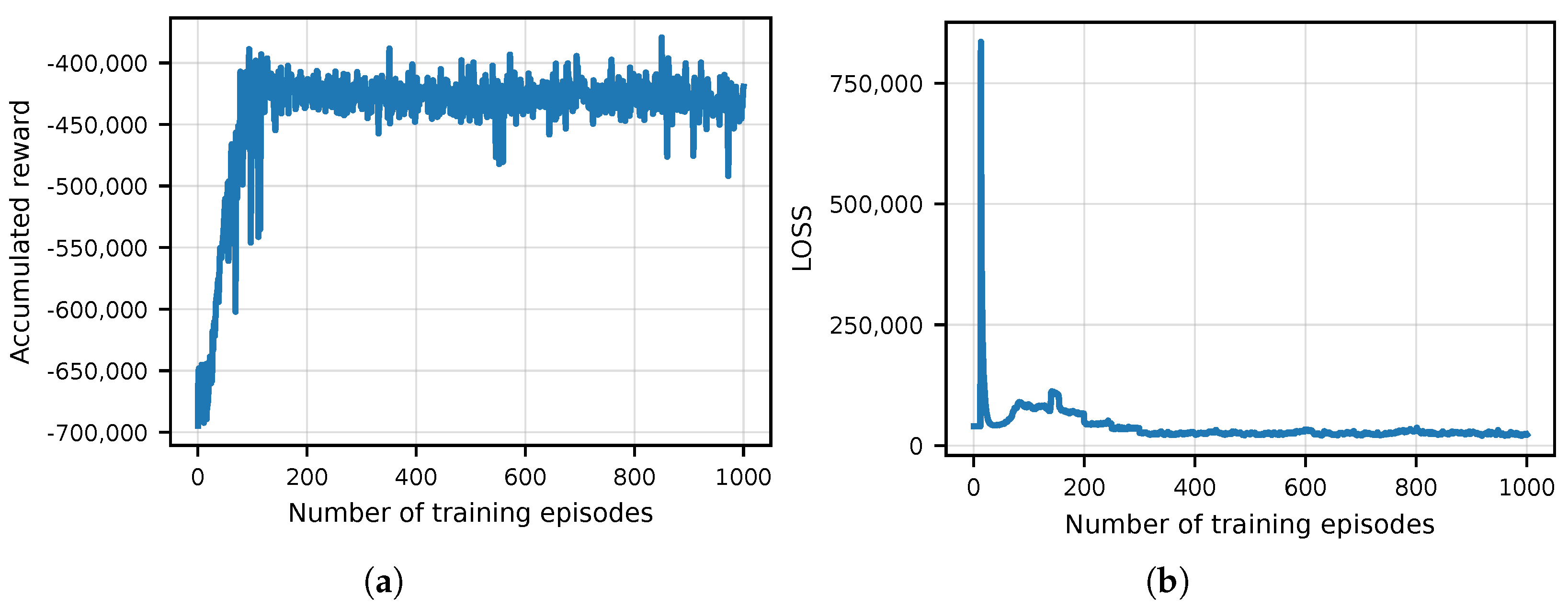 - Mnih, V.; Kavukcuoglu, K.; Silver, D.; Rusu, A.A.; Veness, J.; Bellemare, M.G.; Graves, A.; Riedmiller, M.; Fidjeland, A.K.; Ostrovski, G.; et al. Human-level control through deep reinforcement learning. Nature 2015, 518, 529–533. [Google Scholar] [CrossRef] [PubMed]