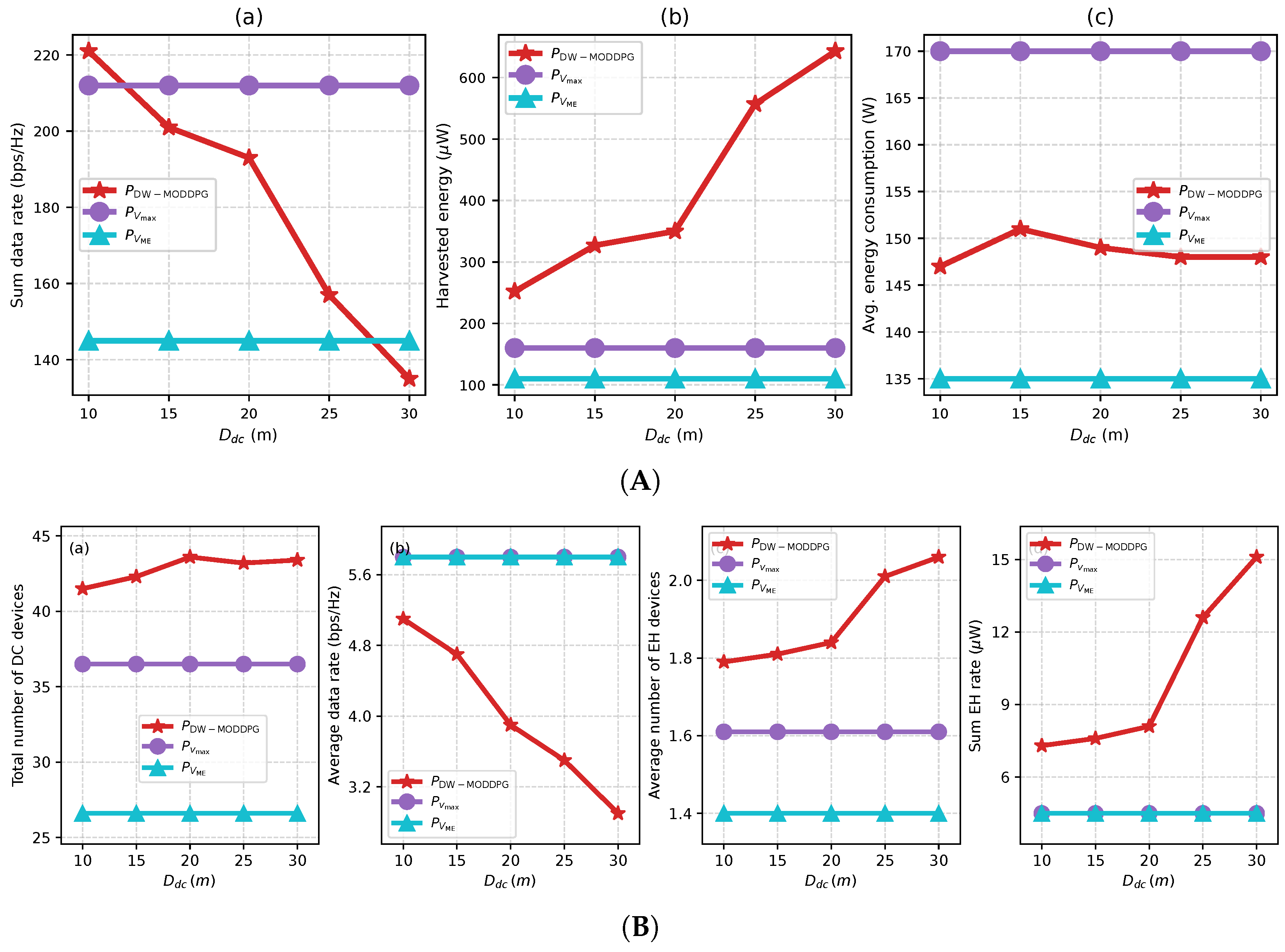 - Simulation results confirm that our proposed DW-MODDPG approach achieves better flexibility and coordination across multiple objectives. By adjusting weight outputs in real time, the UAV policy exhibits strong generalization and responsiveness to different task priorities.