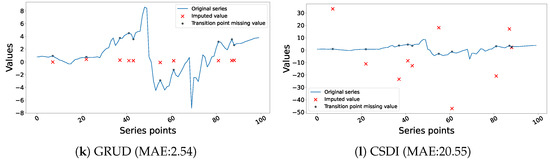 - GRU-D [65] is proposed specifically for multivariate time series with missing values, with an emphasis on “informative missingness.” It employs a Gated Recurrent Unit (GRU) architecture and integrates time interval and masking as two representations of missing patterns. GRU-D successfully captures long-term temporal dependencies and employs missingness for better prediction by incorporating these patterns into the inputs and hidden states of the GRU through trainable decay mechanisms. This method improves classification performance on synthetic and real-world clinical datasets.