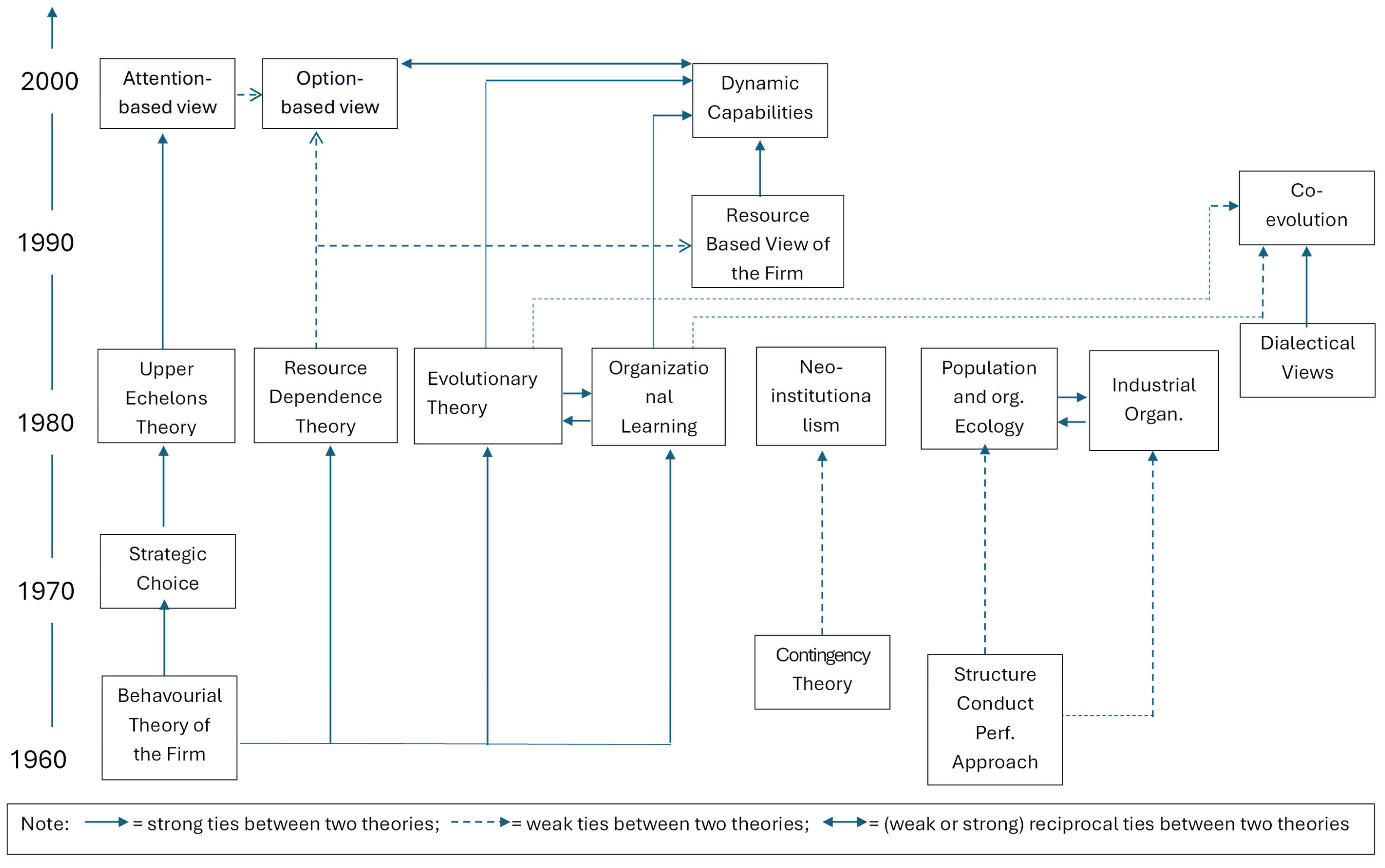 Evolutionary economics | Routines and variation-selection-retention processes | Firm/industry | Managing the new normal—explains gradual renewal and long-term adjustment |