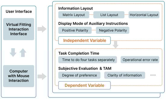This study aims to achieve two primary objectives. First, it seeks to quantify objective operational performance by examining the influence of information layout and display mode on users’ visual search efficiency, thereby proposing design recommendations for virtual fitting interfaces that are aligned with users’ cognitive habits. Second, it aims to analyze the subjective interaction experience by investigating the effects of these design factors on users’ subjective evaluations, which will provide crucial insights for optimizing the overall usability of the interface. Therefore, the study aims to reduce the cognitive load on users when using the virtual fitting interface and enhance the usability of virtual fitting systems.