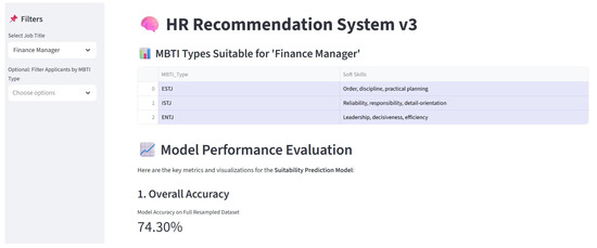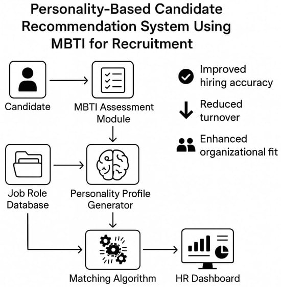 New discoveries in artificial intelligence and machine learning have provided additional opportunities in automating and expanding personality-based recruitment. It has also been found that it is possible to accurately predict psychological indicators and occupational preferences through personality traits by the use of machine learning models; this prediction technique leads to better job–person matching [13]. Nevertheless, most of those systems are based on the concept of the Big Five personality and have been adjusted to Western labor markets [14,15]. There is limited research on how MBTI can be used in algorithmic recruitment systems, particularly in emerging economies [16].
