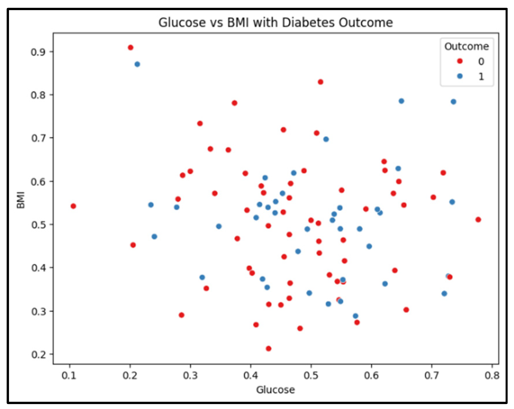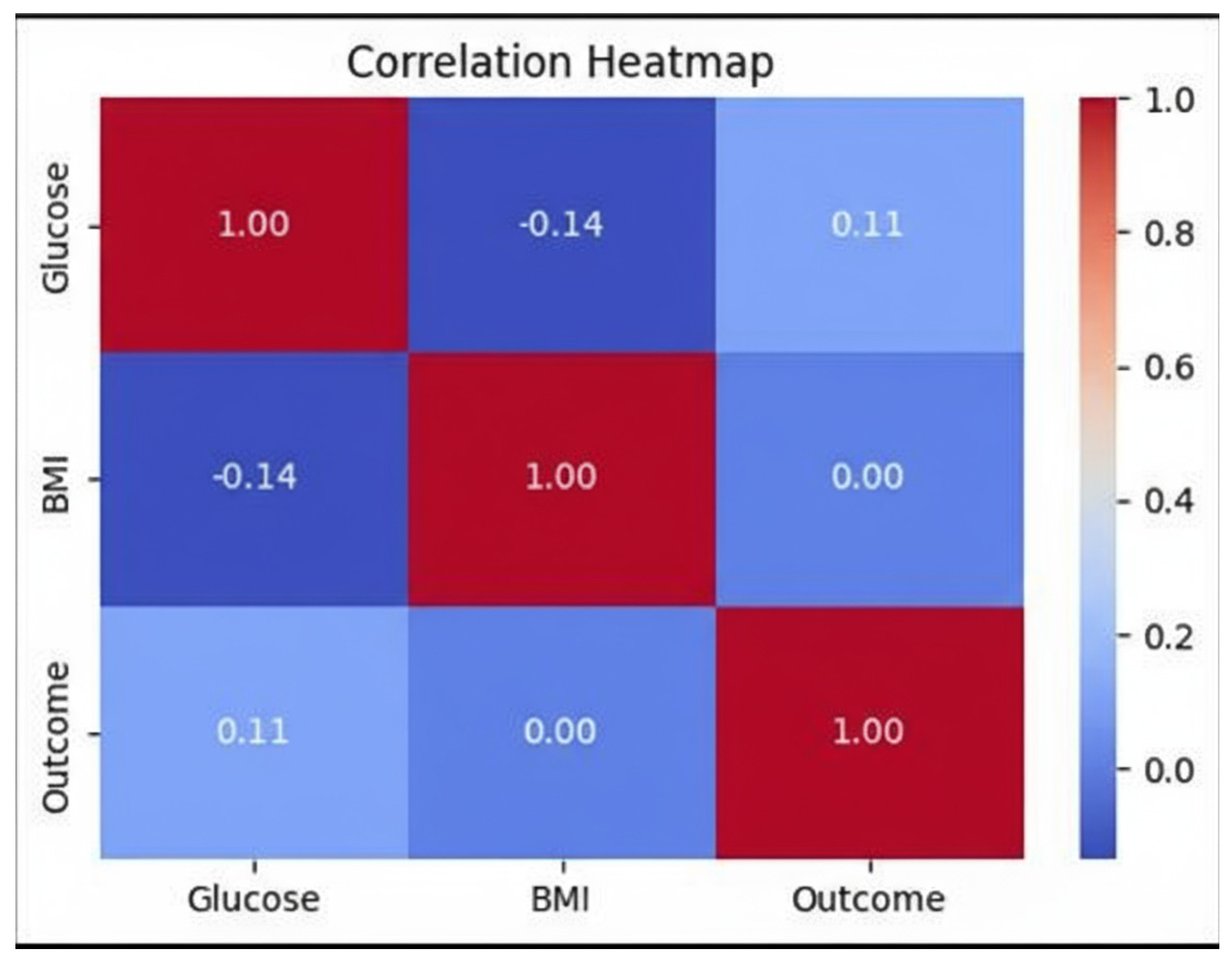 3.2.2. Glucose vs. BMI vs. Outcome Correlation Heatmap
