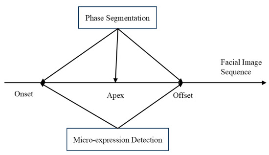 Micro-expression recognition is not just a one-time classification task. Its recognition process includes multiple stages. The first step is detection, that is, identifying whether there are micro-expressions in the image sequence. The two common scenarios are to identify implicit micro-expressions from a static expressionless state, or to distinguish micro-expression fragments from ordinary macro-expressions. Since micro-expressions often last only a few hundred milliseconds and the changes in facial muscles are extremely weak, high requirements are placed on the model’s temporal perception and differentiation capabilities [24].