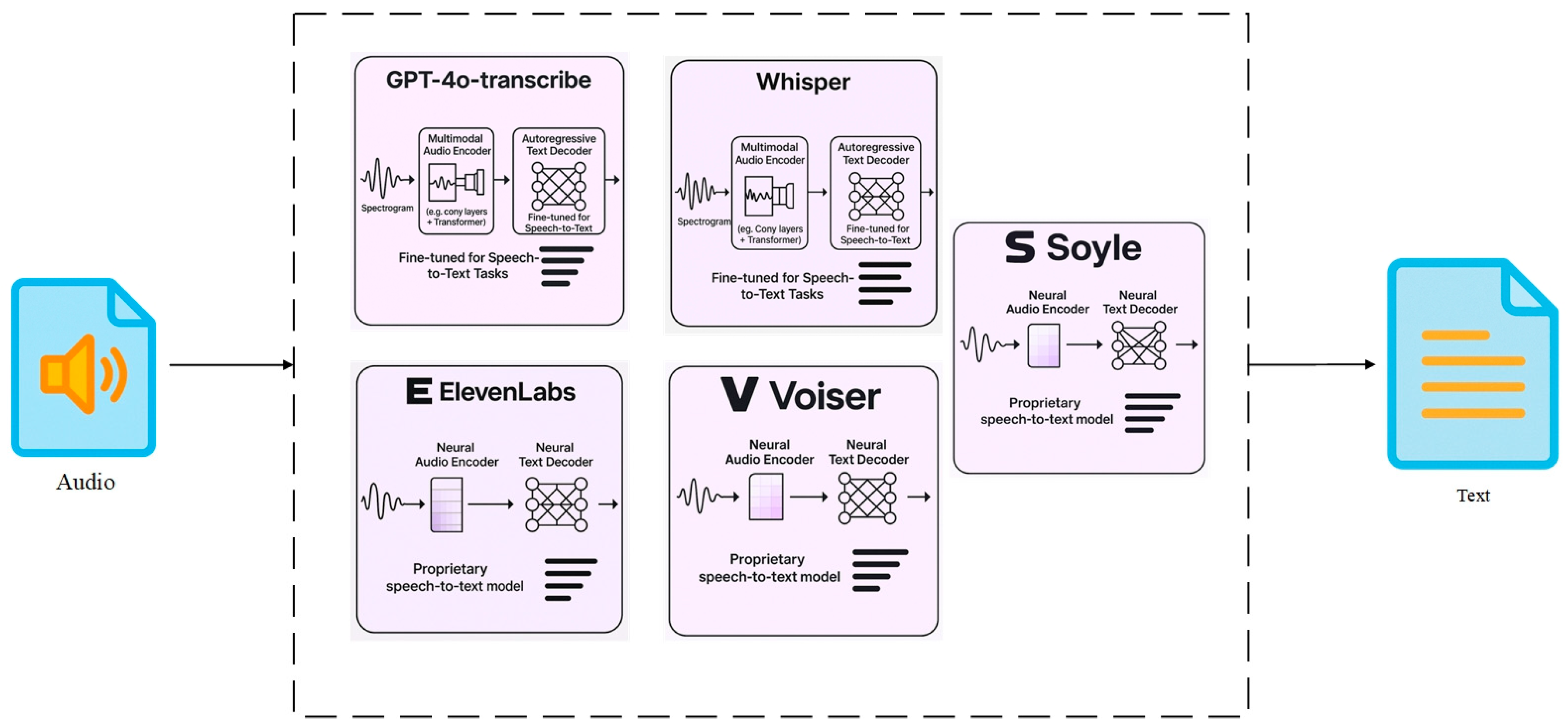 - GPT-4o-transcribe (OpenAI). Available online: https://platform.openai.com/docs/models/gpt-4o-transcribe (accessed on 2 July 2025).