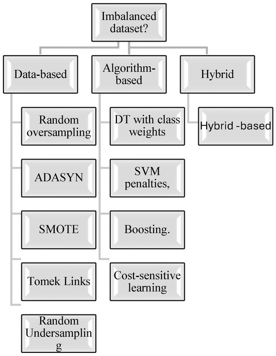 As shown in Table 1, the literature review was separated into three categories: data level [10,11], algorithm level [12,13,14,15,16]), and hybrid [17,18,19]. This classification clarified the gaps, and most of the articles are at the algorithm level, with a few more recent ones being hybrid. The most recent perspective is the Internet of Vehicles (IoV) with multiclass imbalance [19].