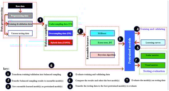 Here, we used an IDS dataset controlled by ML processes to form a powerful environment. These processes varied to include preprocessing steps, resampling examples, and class training of cost-sensitive models, followed by the recruited core classification formulas, evaluation measures, and, finally, the model’s deployment and validation of the concepts and method.