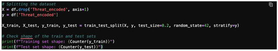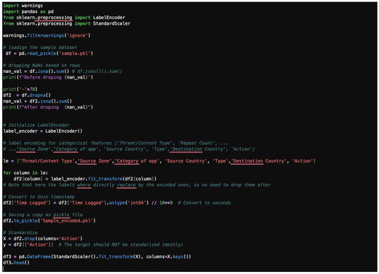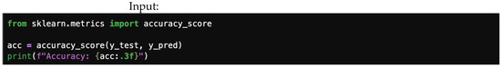 It is important to note that, in imbalanced datasets, accuracy can be misleading. A model that consistently predicts “normal” could achieve over 90% accuracy but fail to detect any threats. In Figure 6, an example of an accuracy code is given.