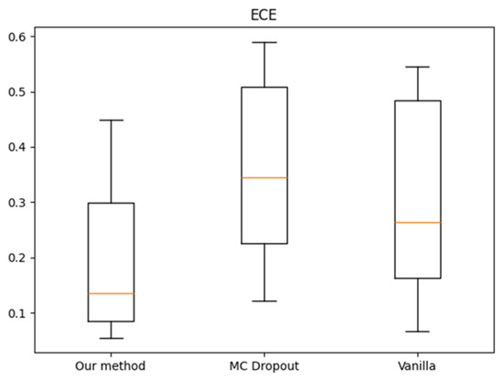 A lower ECE value indicates better calibration—i.e., the model’s confidence scores more accurately reflect the likelihood of correctness. However, it is important to note that a lower ECE does not necessarily imply higher classification accuracy; calibration and accuracy are related but distinct properties [18].