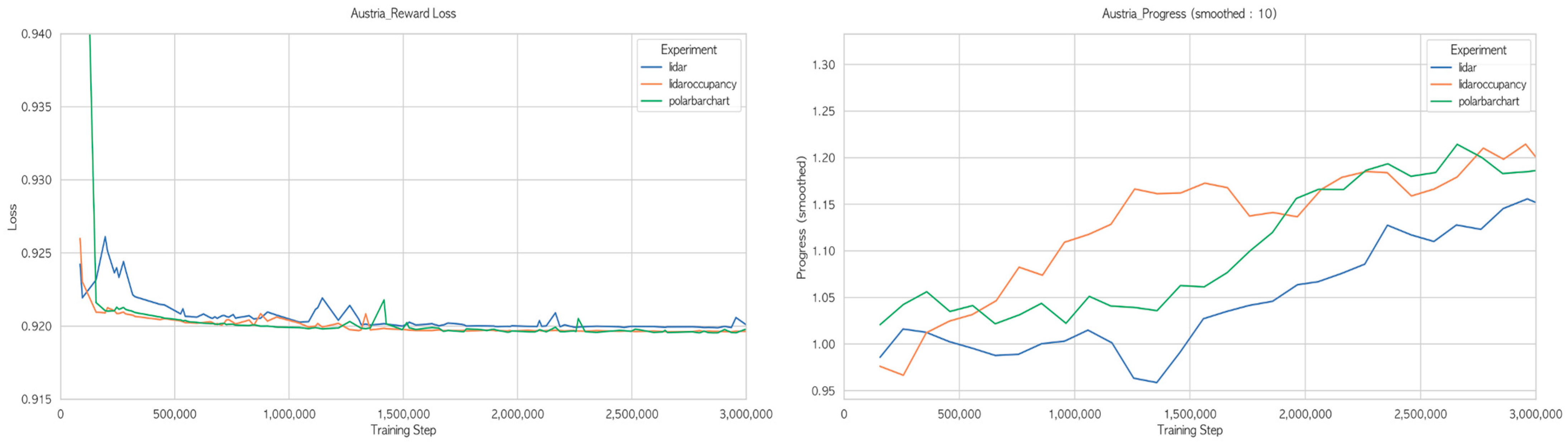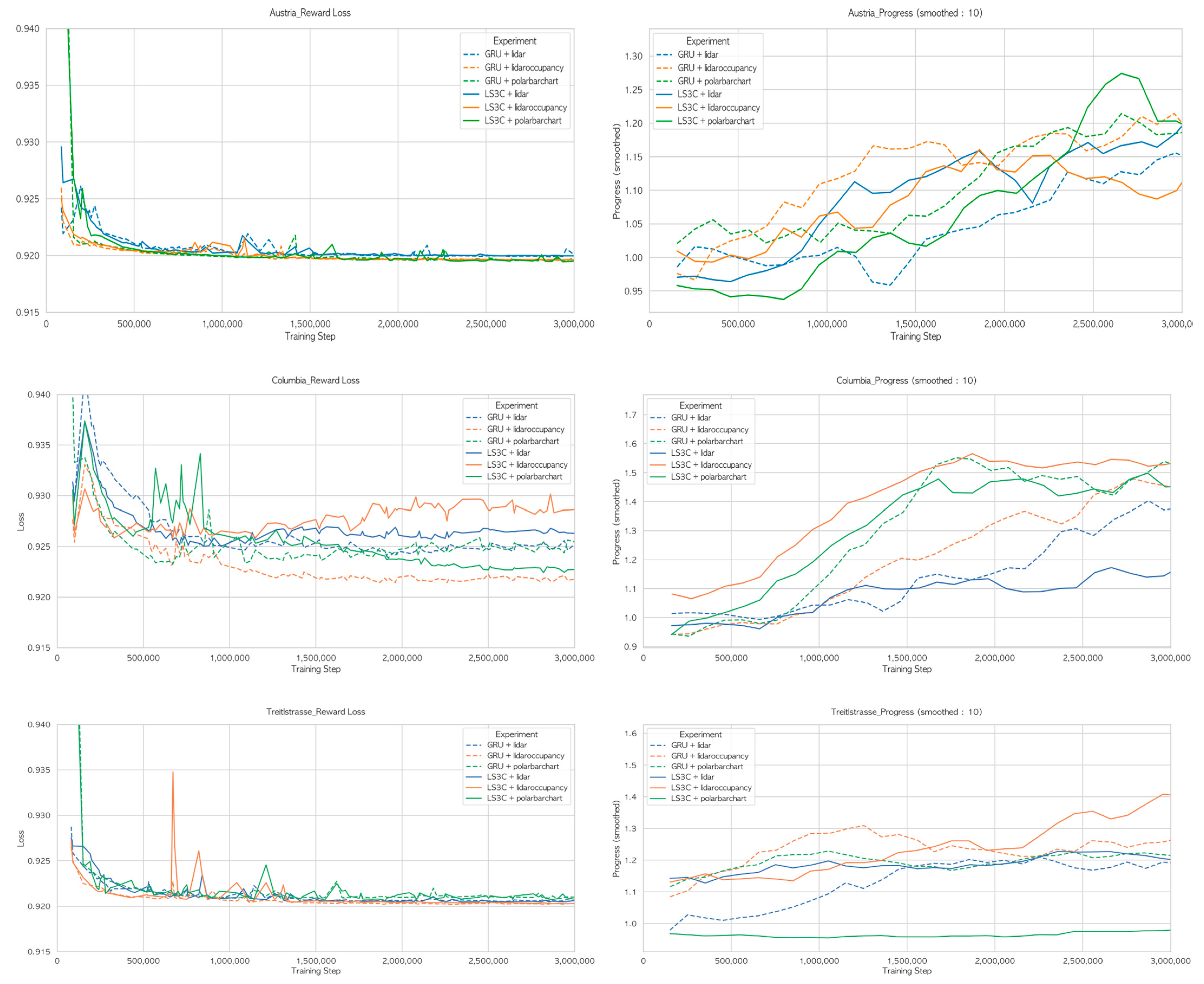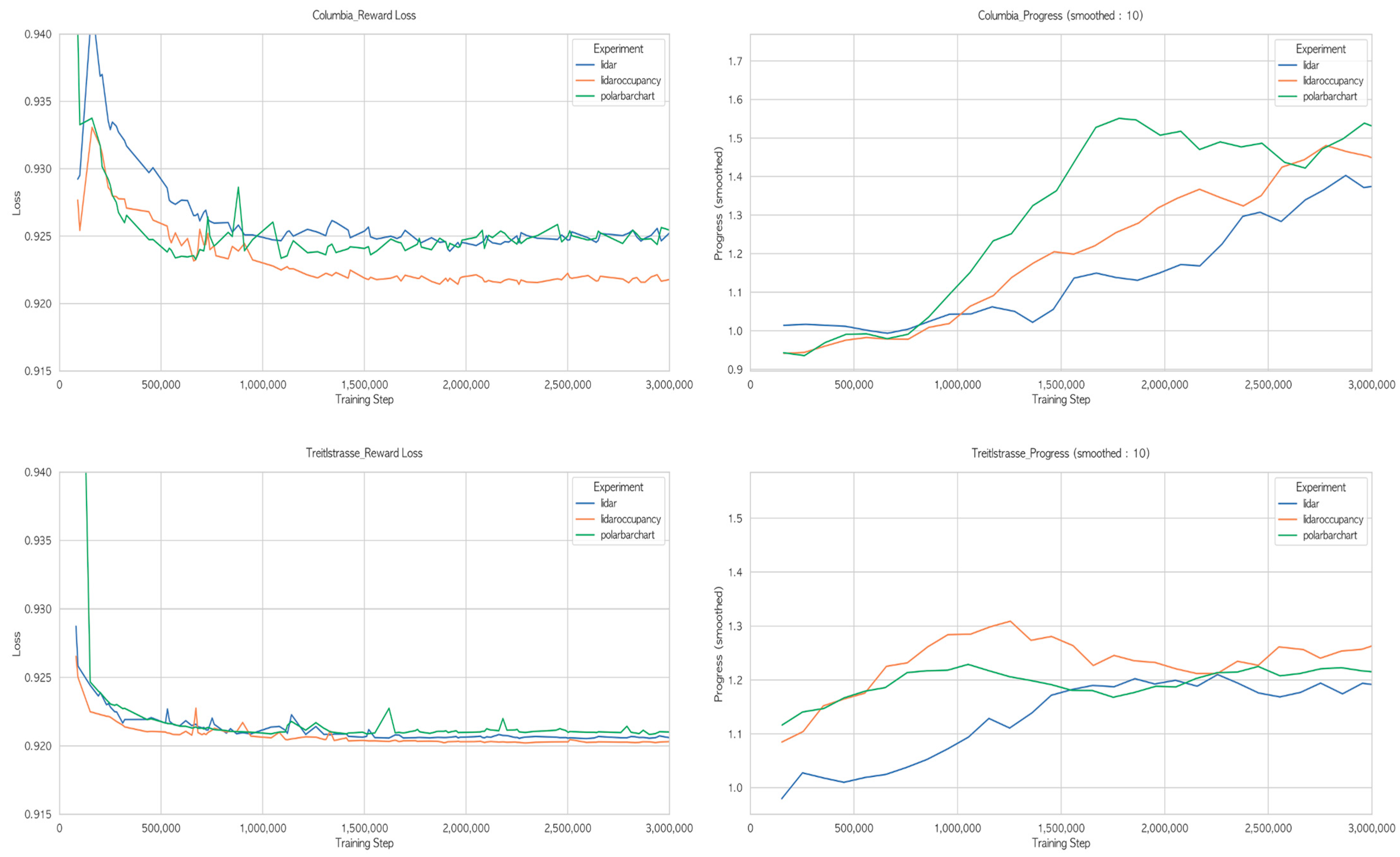 - Utilizing a Cartesian Polar Bar Chart enables the use of more input information compared to existing Dreamer-based autonomous driving algorithms. While it maintains a consistent input representation format across different maps, showing better results on tracks with gradual curves than those with sharp corners.