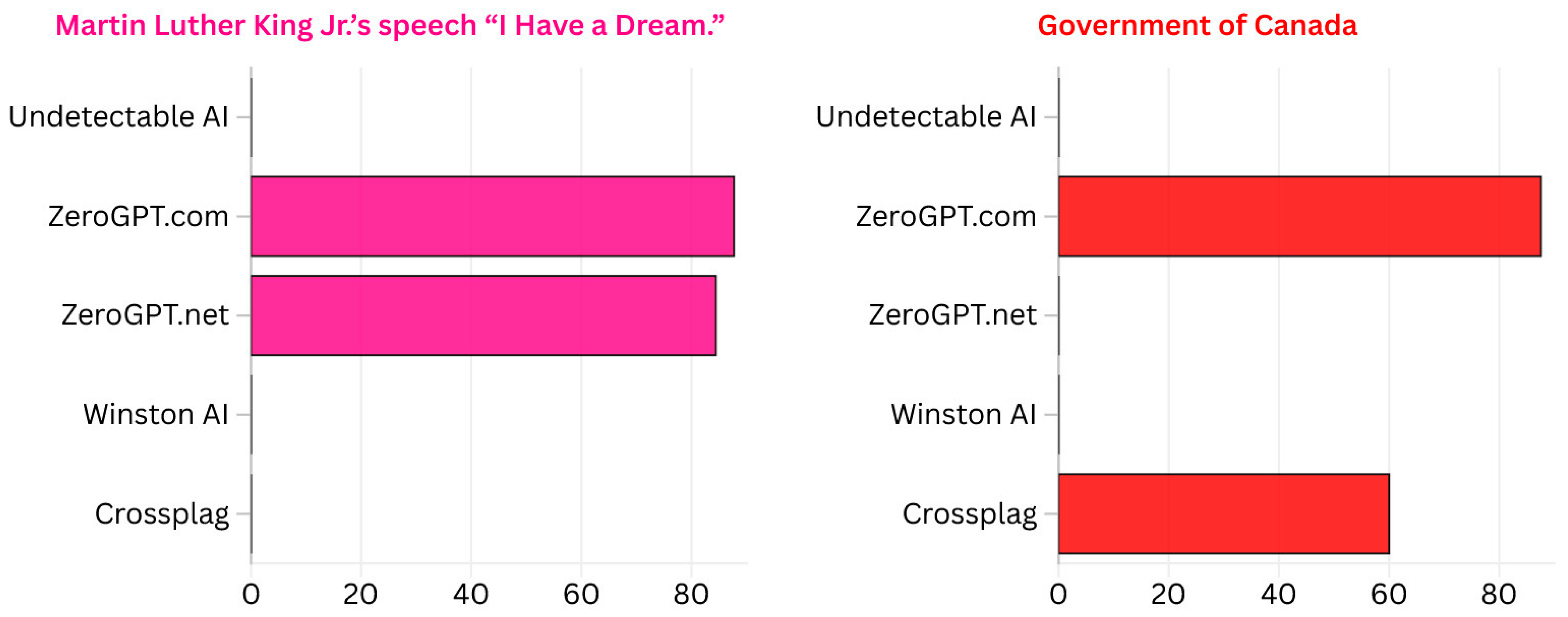 | Government website | Martin Luther King Jr.’s speech “I Have a Dream.” [43] | 0 | 87.7 | 84.4 | “Passes as Human” | 0 | 0 | |