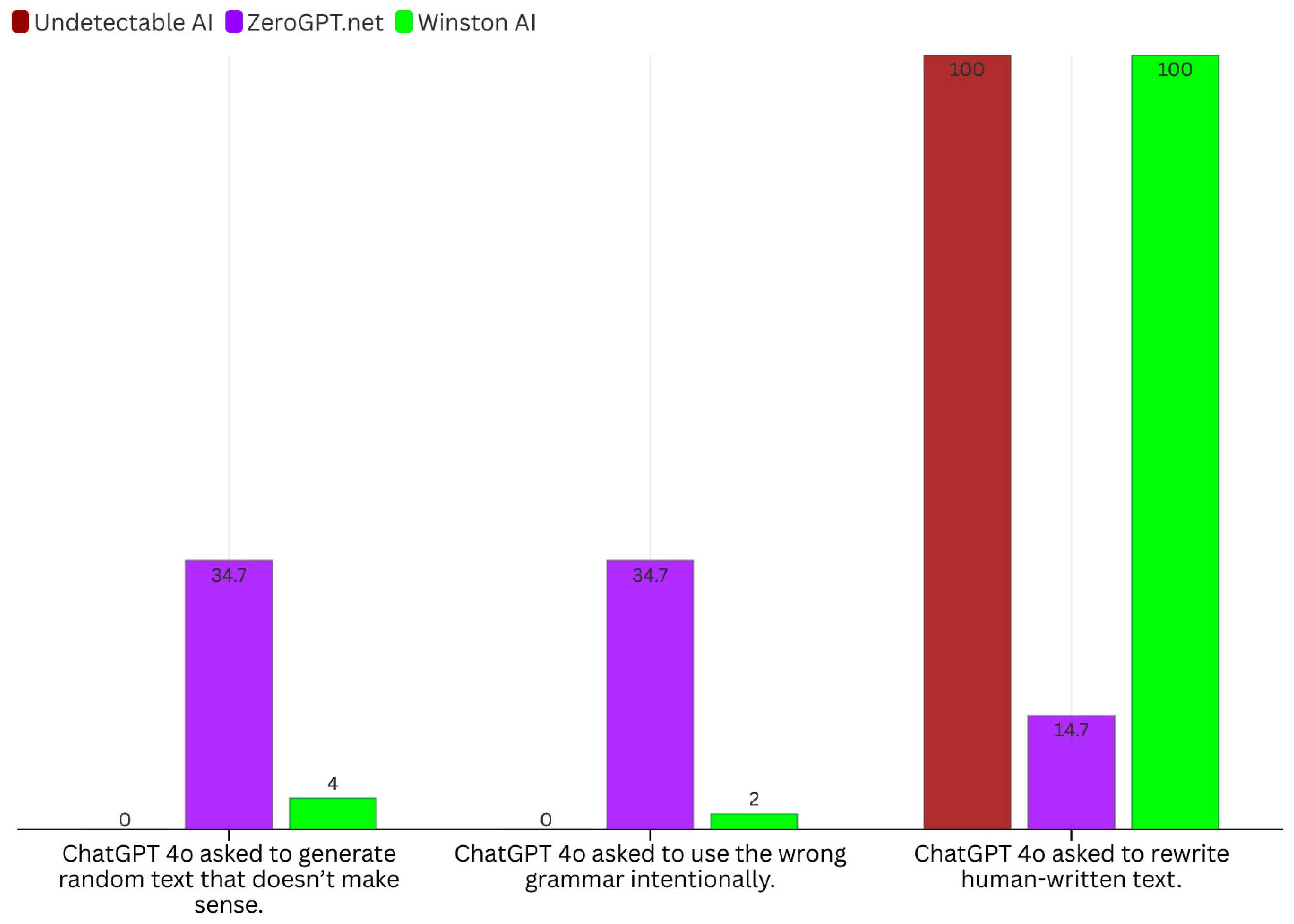 | ChatGPT 4o asked to use the wrong grammar intentionally. | 0 | 0 | 34.7 | “Passes as Human” | 2 | 0 | ||